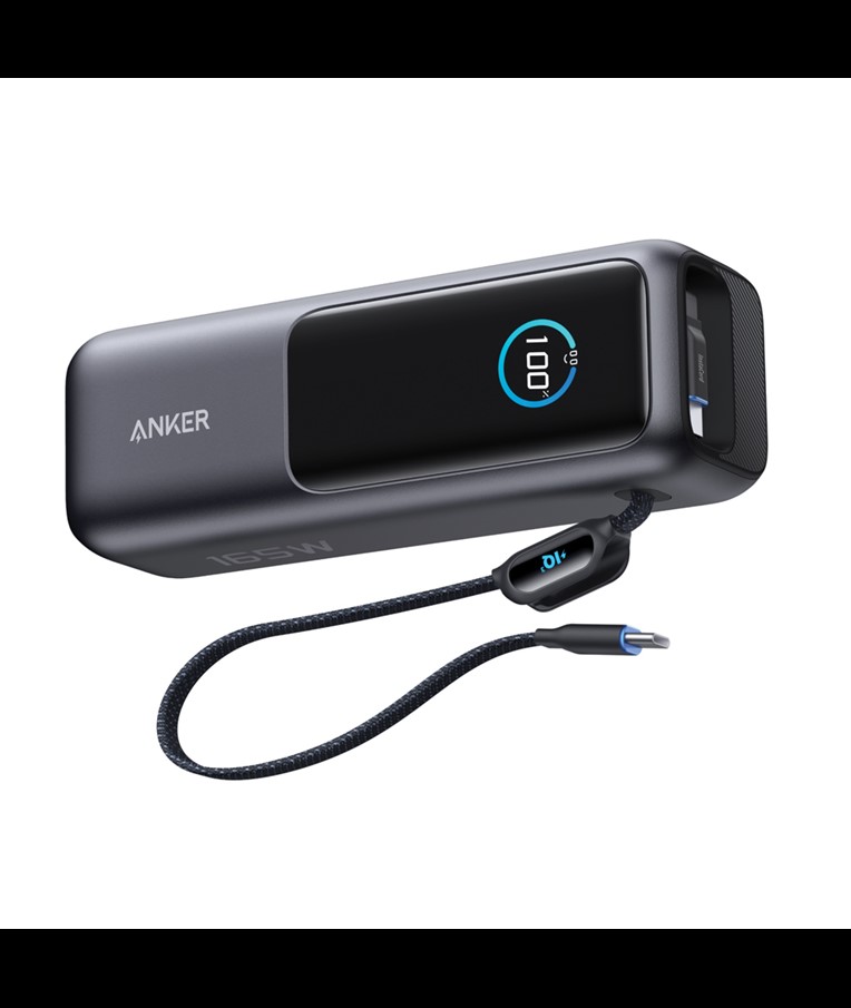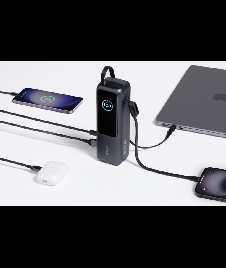 Ta Ankerjeva prenosna baterija (25.000 mAh, 165 W, vgrajeni in zložljivi kabli) je zasnovana za resno polnjenje na poti. Z ogromno kapaciteto 25.000 mAh in izhodno močjo do 165 W neverjetno hitro napaja vse od pametnih telefonov do prenosnikov – MacBook ali iPhone napolni do 50 % v manj kot 35 minutah. Njena izstopajoča lastnost sta dva vgrajena kabla USB-C: eden zložljiv in eden integriran v trpežen trak za nošenje, kar odpravlja potrebo po dodatnih kablih. Prek dodatnih vrat USB-A in USB-C lahko hkrati polnite do štiri naprave, hkrati pa ste obveščeni s pametnim digitalnim zaslonom, ki prikazuje stanje baterije v realnem času. Z Ankerjevim naprednim ActiveShield 2.0 za varno polnjenje in kompaktno, robustno zasnovo je ta prenosna baterija idealna za delo, potovanja ali vsakodnevno uporabo, ko sta zmogljivost in udobje najpomembnejša.