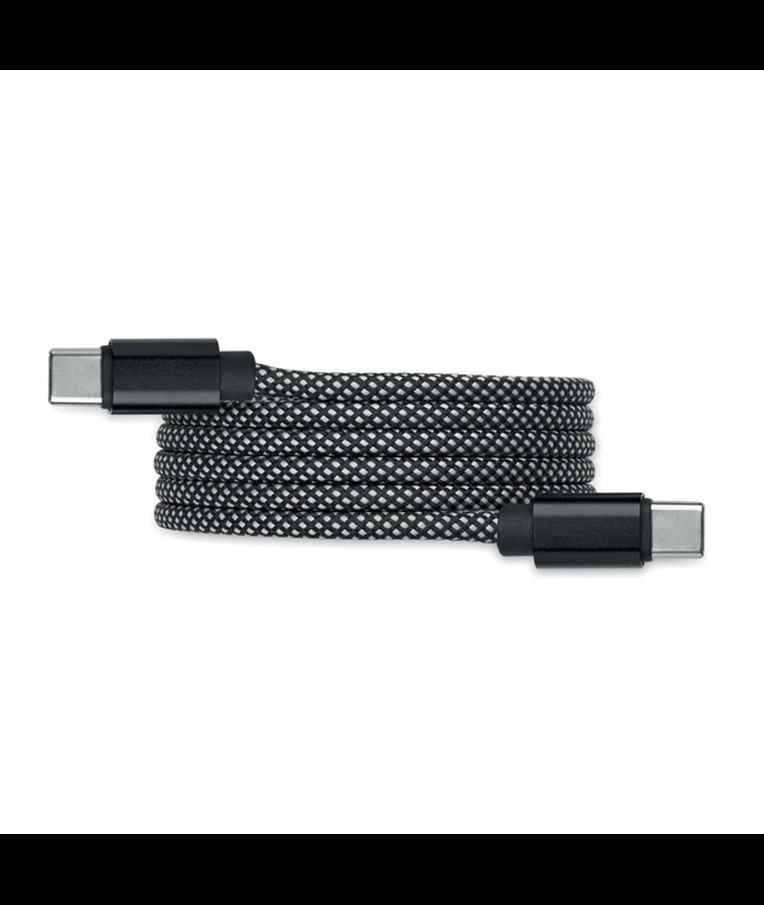 Pleten magnetni kabel, ki se ne zapleta, izdelan iz RPET-a s certifikatom GRS in aluminija. Tip C do C, hitro polnjenje 60 W, dolžina 1 m. Vedno se lepo zloži in se nikoli ne zaveže v vozel.